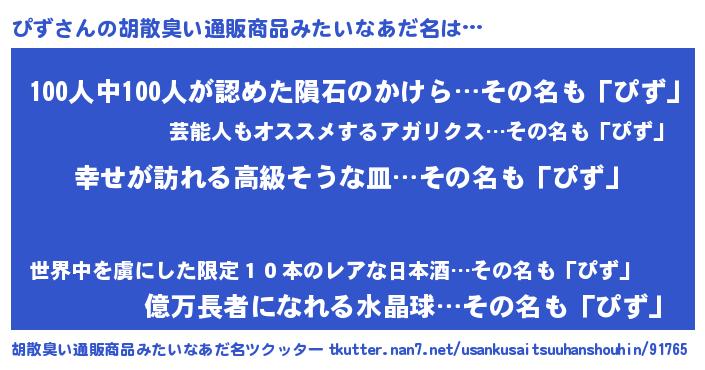 | 女子向けラノベタイトル風あだ名 | 『ぴずの雑貨屋さん』『ぴず恋絵巻』 |