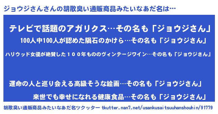 | 意味不明あだ名 | 『住所不定無職ジョウジさん(6歳)』 |