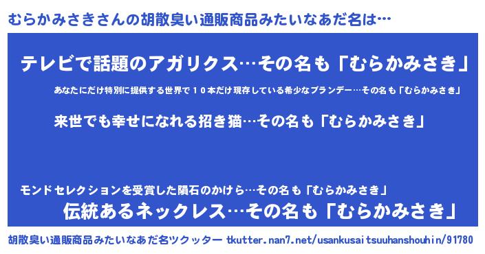 | 意味不明あだ名 | 『永久保存むらかみさき』 |