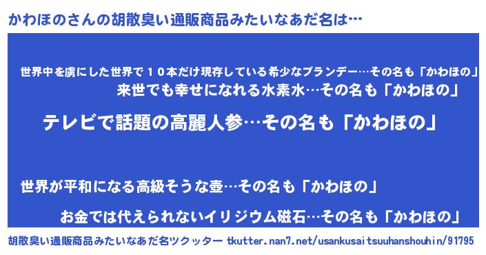 | ヘコむあだ名 | 『かわほの(笑)』『酢こんぶ』 |