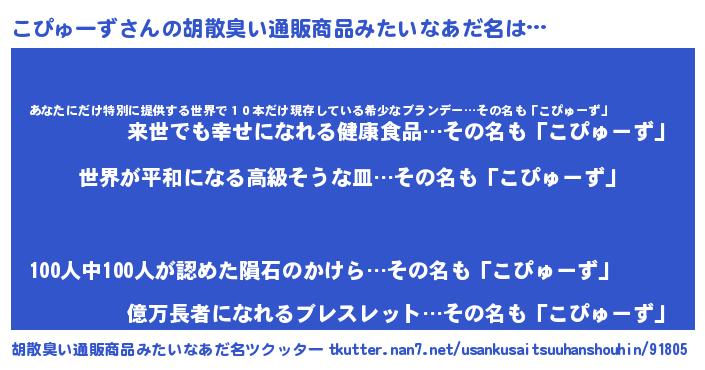 | ヘコむあだ名 | 『なまこ酢』『こぴもー』『こぴ太郎』 |