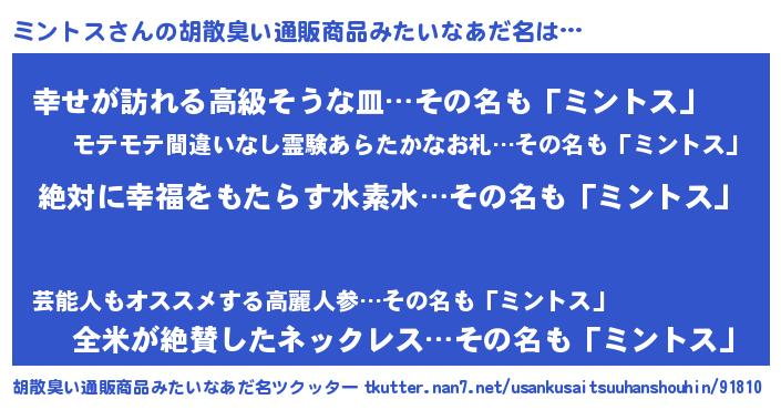 | ヒーロー風カッコイイあだ名 | 『ネオミントス』『ウルトラミントスマン』 |