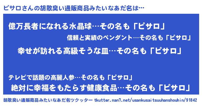 | ポケモン風あだ名 | 『ピサキング』『ピサロダネ』 |