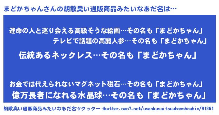 | 意味不明あだ名 | 『とにかく怪しいまどかちゃん』 |