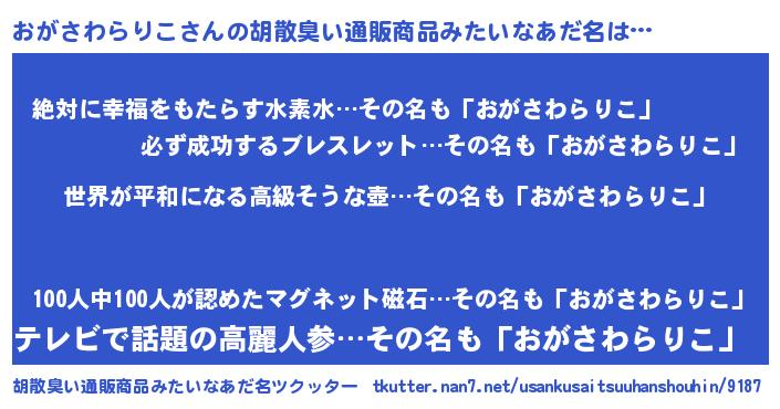 | ヘコむあだ名 | 『豆乳』『おがさわらりこ(震え声)』 |
