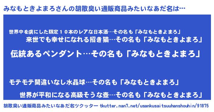 | 男性向けラノベタイトル風あだ名 | 『みなもときよまろの嫁は女の子じゃないと思った?』 |