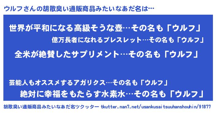 | ヘコむあだ名 | 『ウルお』『なまこ酢』『ウルふぇ~』 |