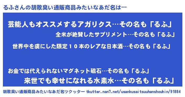 | 意味不明あだ名 | 『住所不定無職るふ(53歳)』『自称るふ』 |
