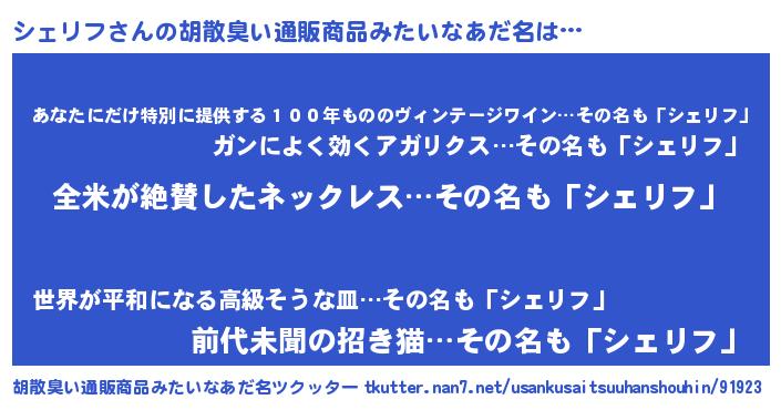 | ヘコむあだ名 | 『シェっぺ』『シェリフ(小並感)』 |
