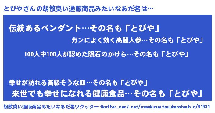 | 欧米人風あだ名 | 『トリンドルとびや』『ダニエルとびや』 |