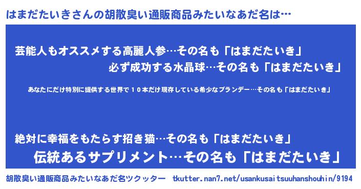 | ヒーロー風カッコイイあだ名 | 『仮面ハマダー』『銀牙騎士ハマ』 |