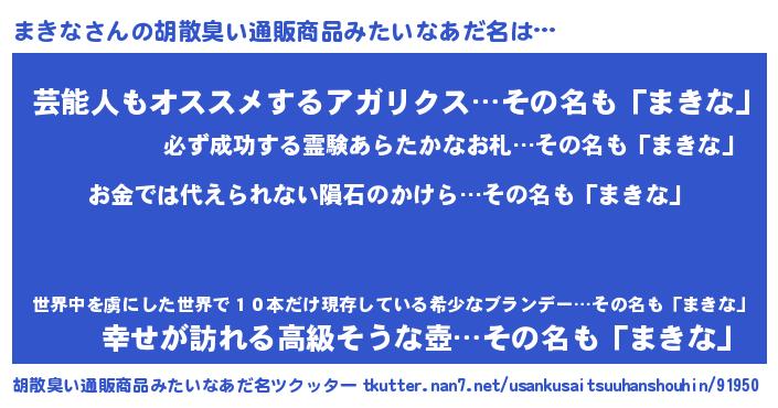 | ヘコむあだ名 | 『豆乳』『まきっふぃ~』『まきを』 |