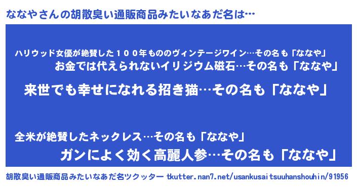 | ヘコむあだ名 | 『ななや(笑)』『ななお』『レバニラ』 |