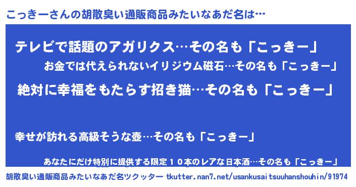 | 意味不明あだ名 | 『永久保存こっきー』『自称こっきー』 |