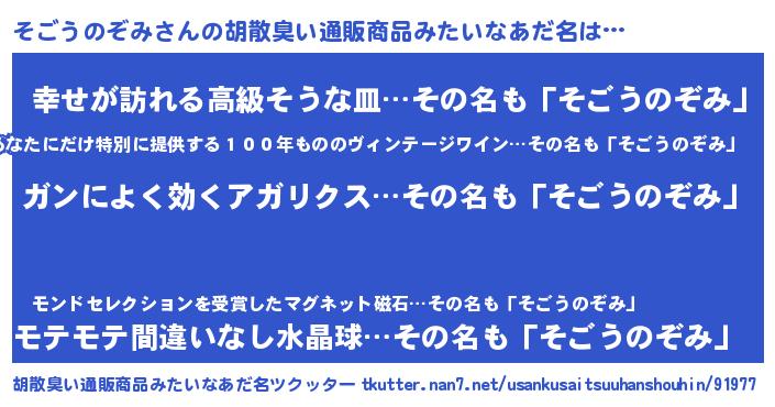 | 意味不明あだ名 | 『自称そごうのぞみ』 |