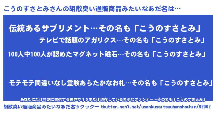 | 肩書あだ名 | 『こうのすさとみ助教授』 |