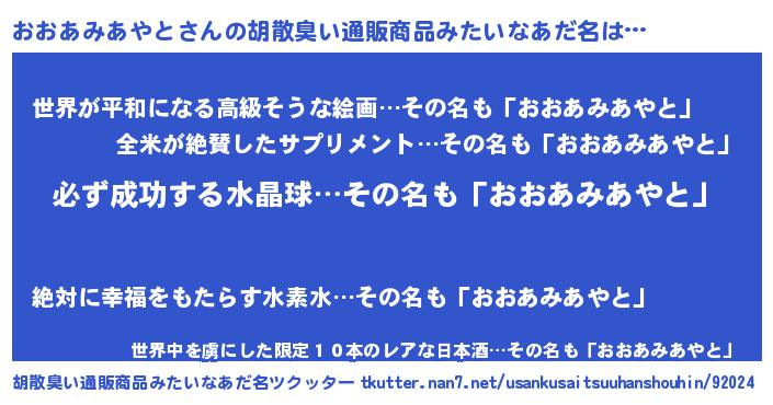 | 男性向けラノベタイトル風あだ名 | 『おおあみあやとの憂鬱』 |