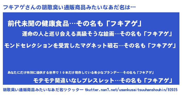 | ヒーロー風カッコイイあだ名 | 『天空の使者フキアゲ』『ネオフキアゲ』 |