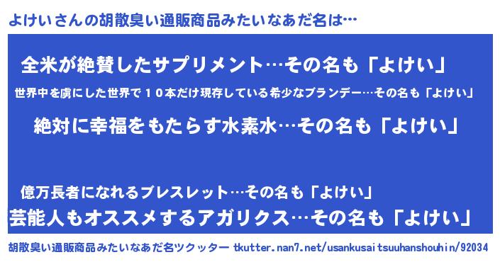 | 意味不明あだ名 | 『永久保存よけい』『自称よけい』 |