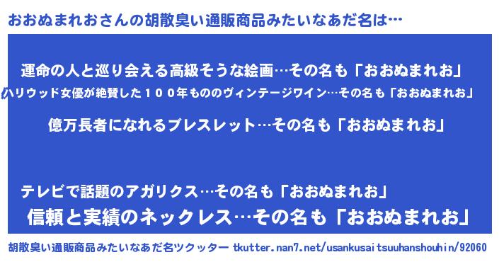 | 欧米人風あだ名 | 『マイケルおおぬまれお』 |