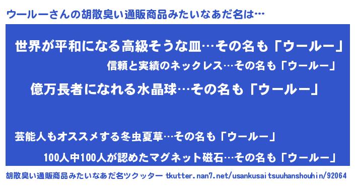 | ヘコむあだ名 | 『ウーふぇ~』『豆乳』『ウーを』 |