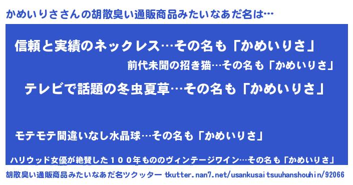| ヘコむあだ名 | 『かめっぺ』『かめいりさ(笑)』 |