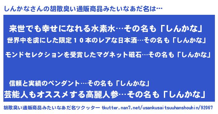 | ヒーロー風カッコイイあだ名 | 『天空の使者しんかな』『ネオシンカナ』 |