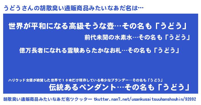 | 2回繰り返すあだ名 | 『うどうど』『とげとげ』『ううどど』 |