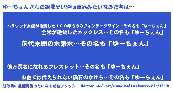 | 意味不明あだ名 | 『永久保存ゆーちぇん』 |