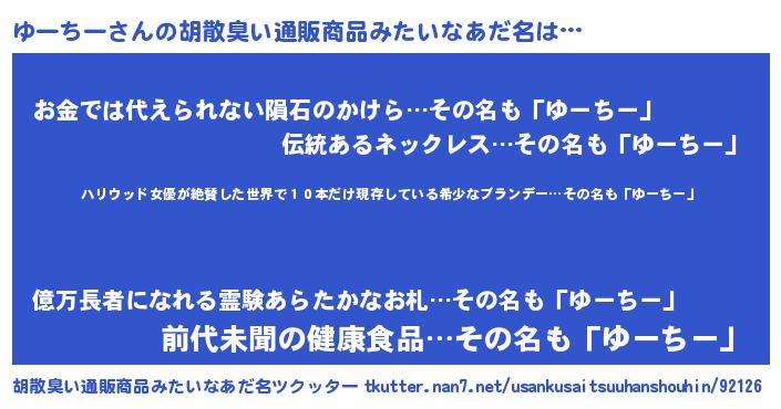 | 意味不明あだ名 | 『住所不定無職ゆーちー(98歳)』 |