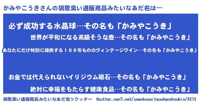 | 意味不明あだ名 | 『住所不定無職かみやこうき(6歳)』 |