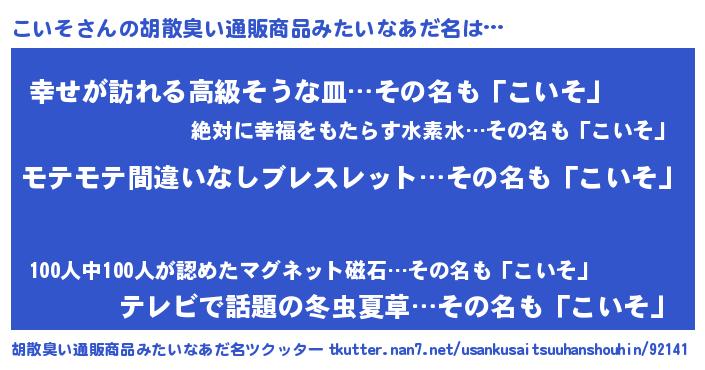 | ヘコむあだ名 | 『こいにー』『牛乳』『こいお』 |