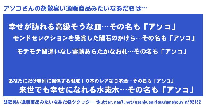 | ファンタジー風あだ名 | 『アソフェル』『エターナルアソコー』 |