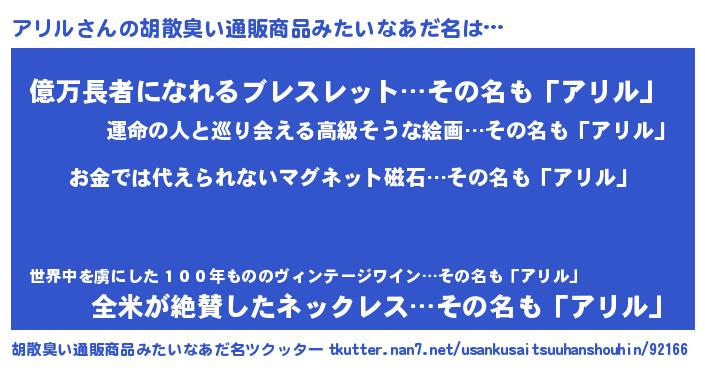 | ヘコむあだ名 | 『アリにー』『アリお』『酢こんぶ』 |