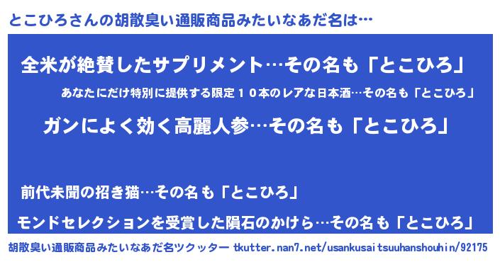 | ヘコむあだ名 | 『とこを』『とこひろ(小並感)』 |