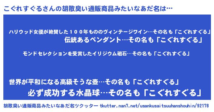| ヒーロー風カッコイイあだ名 | 『慈愛の使者こぐれすぐる』 |
