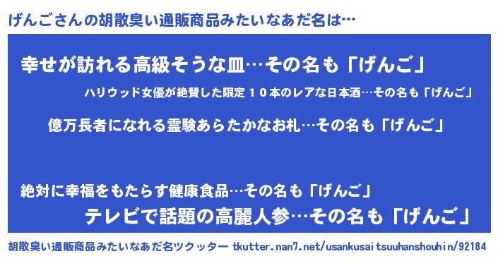 | 肩書あだ名 | 『げんご上級大将』『げんご御曹司』 |
