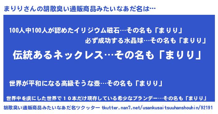 | 意味不明あだ名 | 『とにかく怪しいまりり』 |