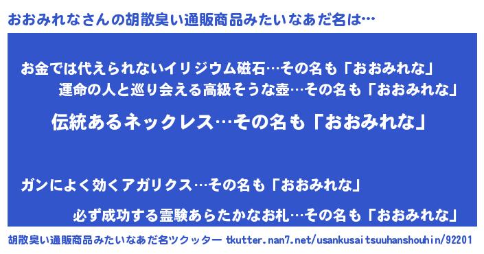 | 男性向けラノベタイトル風あだ名 | 『転生したらおおみれなだった件』 |