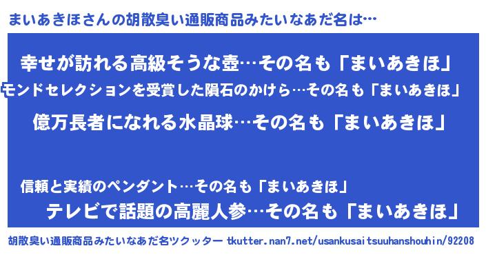 | 恥ずかしいあだ名 | 『プリティーまいあきほ』『まいっちょ』 |