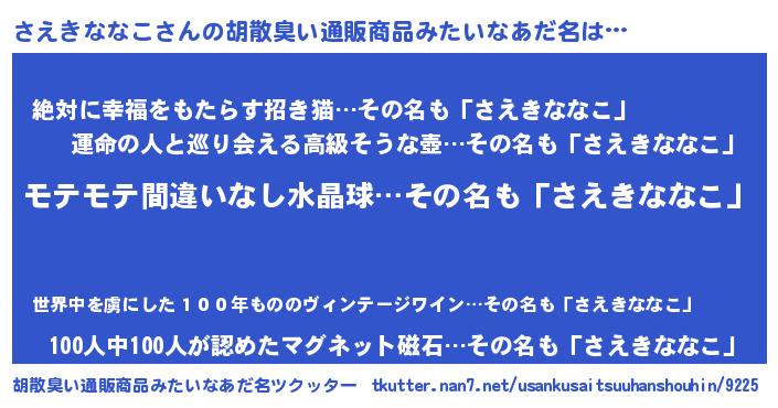 | ヘコむあだ名 | 『さえもー』『さえきななこ(笑)』 |