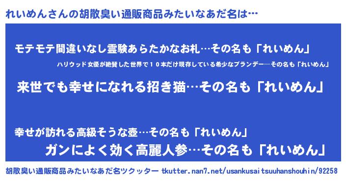 | 意味不明あだ名 | 『永久保存れいめん』『ペロリンれいめん』 |