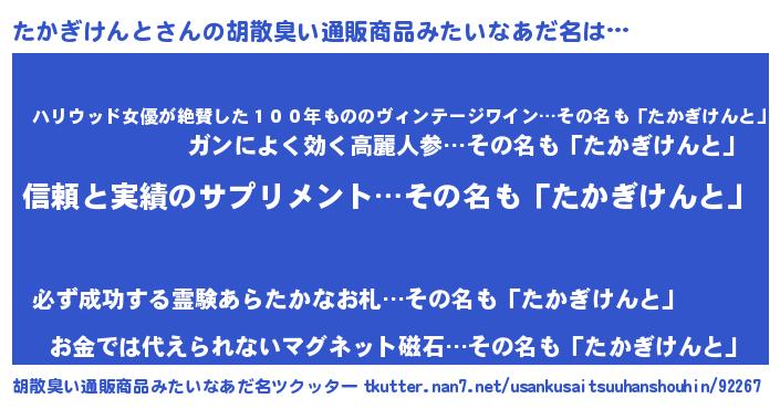 | 意味不明あだ名 | 『とにかく怪しいたかぎけんと』 |