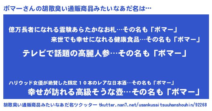 | ヘコむあだ名 | 『ボマにー』『酢こんぶ』『ボマ太郎』 |