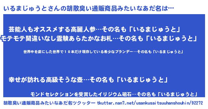 意味不明あだ名 | 『住所不定無職いるまじゅうと(84歳)』 |
