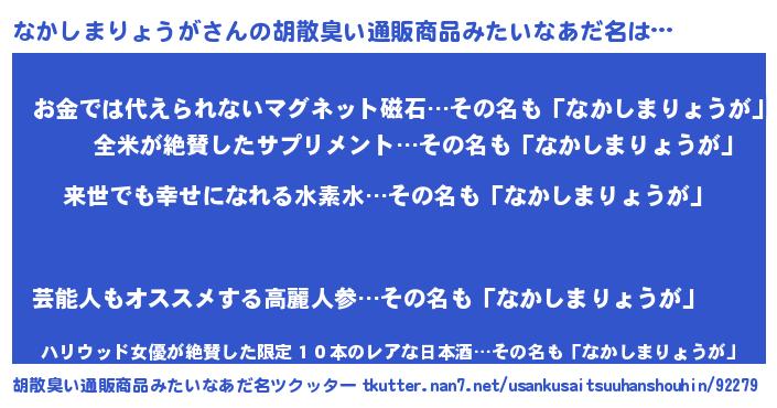 | ヘコむあだ名 | 『なかしまりょうが(苦笑)』『なかっちょ』 |