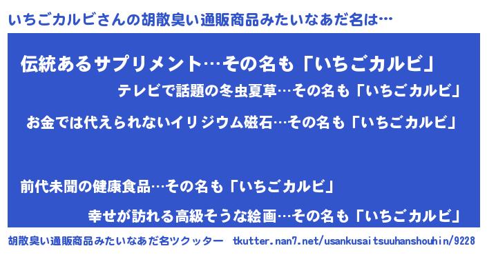| 男性向けラノベタイトル風あだ名 | 『転生したらいちごカルビだった件』 |