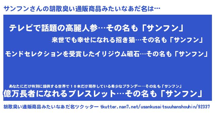 | 男性向けラノベタイトル風あだ名 | 『サンフン~年齢イコール彼女いない歴の魔法使い~』 |