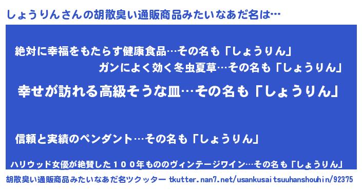 | 女子向けラノベタイトル風あだ名 | 『しょうりんの雑貨屋さん』 |