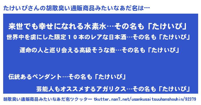 | 意味不明あだ名 | 『たけいぴフォーエバー』『自称たけいぴ』 |